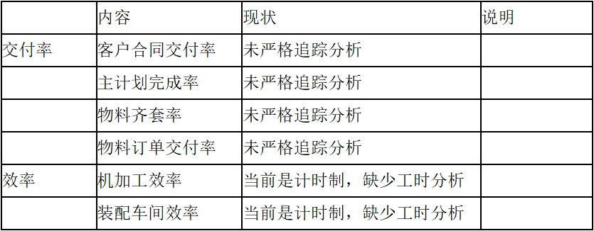 咨詢顧問根據(jù)客戶需求,在現(xiàn)場(chǎng)對(duì)相關(guān)部門或業(yè)務(wù)進(jìn)行了詳細(xì)的訪談,收集了詳細(xì)的數(shù)據(jù),并對(duì)相關(guān)描述與數(shù)據(jù)進(jìn)行分析判斷,得出制約交付與庫(kù)存提升的關(guān)鍵問題,主要包括: