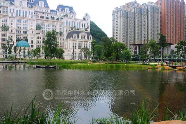 南京中科水治理股份有限公司于2013年12月10日開始,對景觀湖進(jìn)行清水型生態(tài)系統(tǒng)構(gòu)建工程,實(shí)施的主要內(nèi)容有:水體透明度提升、挺水植物、沉水植物群落構(gòu)建,魚類、大型底棲動物群落構(gòu)建,水質(zhì)指標(biāo)監(jiān)測,及養(yǎng)護(hù)管理。2014年2月17日,清水型生態(tài)系統(tǒng)構(gòu)建工程較計(jì)劃提前1個(gè)月完工并通過驗(yàn)收。至今,主要水質(zhì)指標(biāo)仍達(dá)到《國家地表水環(huán)境質(zhì)量標(biāo)準(zhǔn)》GB3838-2002Ⅱ類水標(biāo)準(zhǔn),超過合同規(guī)定的 Ⅳ類水要求,水質(zhì)清澈見底,水生動植物多樣性提高,有效抑制了水體富營養(yǎng)化趨勢。